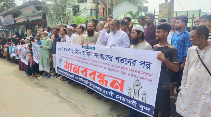 মুন্সীগঞ্জে টঙ্গিবাড়ী বিএনপি সভাপতির বিরুদ্ধে নানা অভিযোগে নেতাকর্মীদের মানববন্ধন।